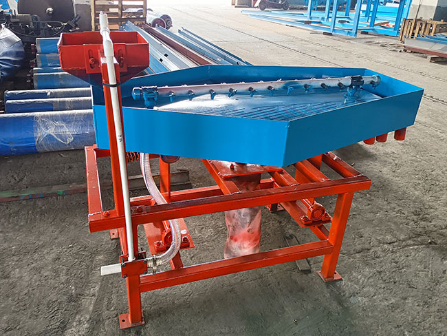 产品简介 : 产品名称:双子星选金摇床|金矿摇床 选金摇床 产品概况: 双子星摇床,又称为选金摇床,金矿摇床。专为将金矿回收成可直接熔炼的精矿而设计。选金摇床有多种型号可满足不同的进料速率,还有实验型号可供选择,摇床凹槽经过独特设计,可优化微细粒金的收集。